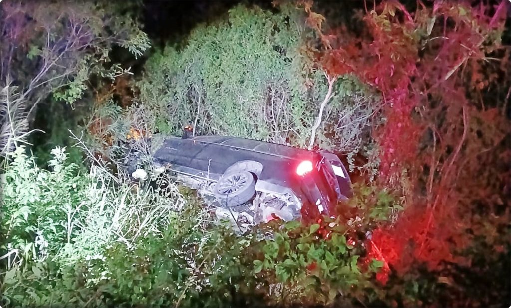 De acuerdo con los primeros reportes, el percance ocurrió presuntamente a causa de una falla en el sistema de dirección, lo que provocó que el conductor perdiera el control de la unidad. La camioneta se salió de la cinta asfáltica y cayó a un barranco de aproximadamente cinco metros de profundidad.
