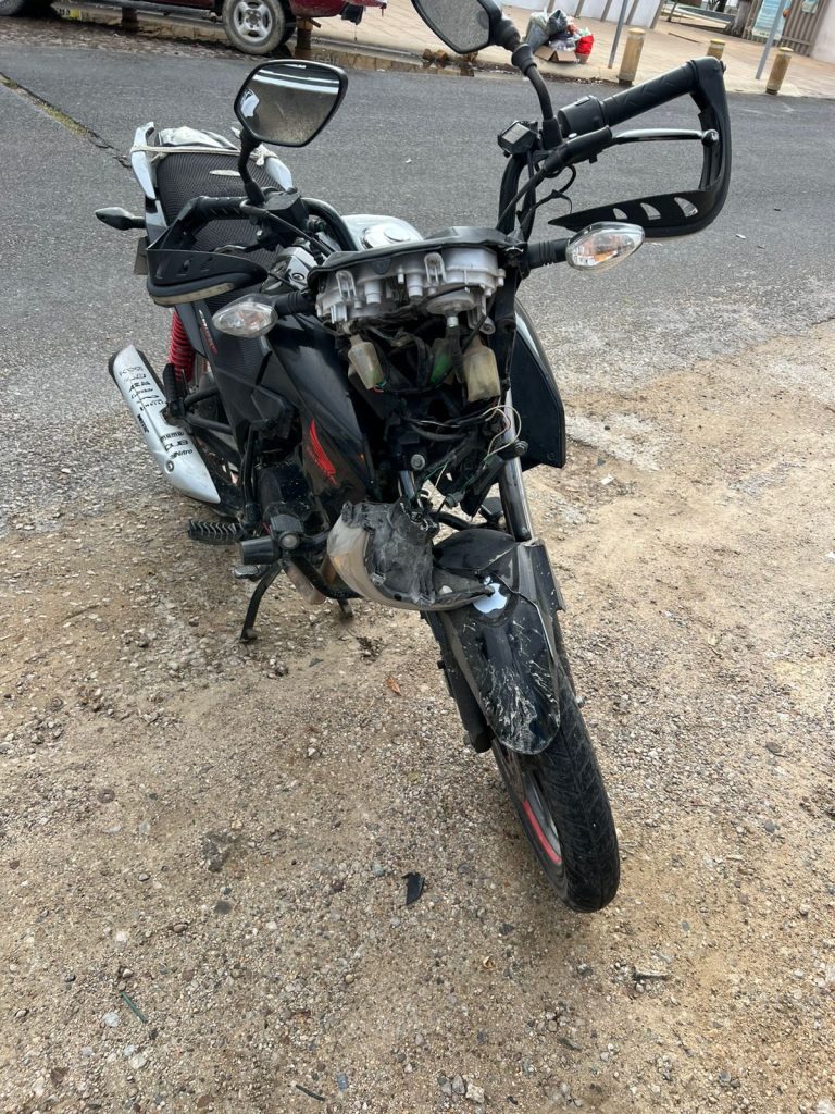 El fuerte choque dejó la motocicleta con severos daños en la parte frontal, prácticamente destrozada. Por fortuna, el motociclista resultó ileso.