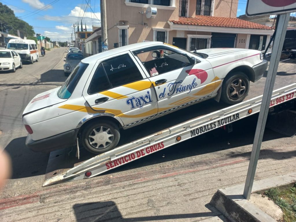 Comitán, Chiapas; 28/AGOSTO/2025.- El día de hoy una unidad tipo Tsuru, en su modalidad de taxi con ruta Comitán–El Triunfo, fue detenida durante un operativo de supervisión realizado por la Secretaría de Movilidad y Transporte.