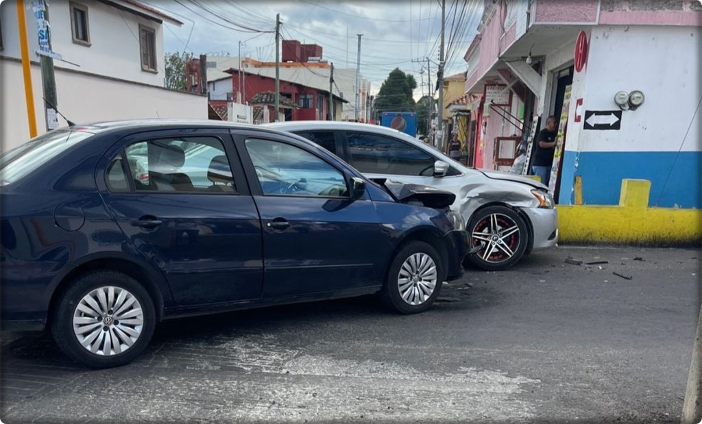 De acuerdo con los primeros reportes, el incidente ocurrió cuando el conductor de un vehículo compacto color gris no respetó un señalamiento vial y fue impactado por otro automóvil de color azul que circulaba sobre la Quinta Calle Norte Poniente.