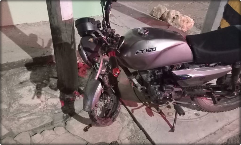 El percance sucedió en el cruce de la novena Avenida poniente con tercera calle sur en donde de acuerdo testigos, el presunto exceso de velocidad del conductor de un vehículo, provocó que se pasara un alto y embistiera a una motocicleta itálica FT150, de color gris.