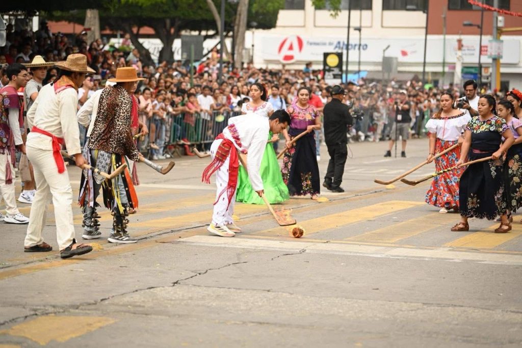 Asimismo, el de Cero Corrupción, que refrenda el compromiso por un Chiapas íntegro y transparente; el de Inclusión, con una representación de la igualdad, la dignidad y la resiliencia; el del Comedor del Humanismo; Chiapas Extraordinario por Naturaleza, exaltando la riqueza natural y la responsabilidad de preservarla; Ruta de las Culturas Mayas, que une el pasado ancestral con la infraestructura contemporánea del estado; además del de Salud, que rinde homenaje a las parteras tradicionales y al personal de brigadas de salud pública. También participaron contingentes de Protección Civil, del Instituto Nacional de Migración, de la Asociación de Charros y Escaramuzas y del Grupo Aerobalam.