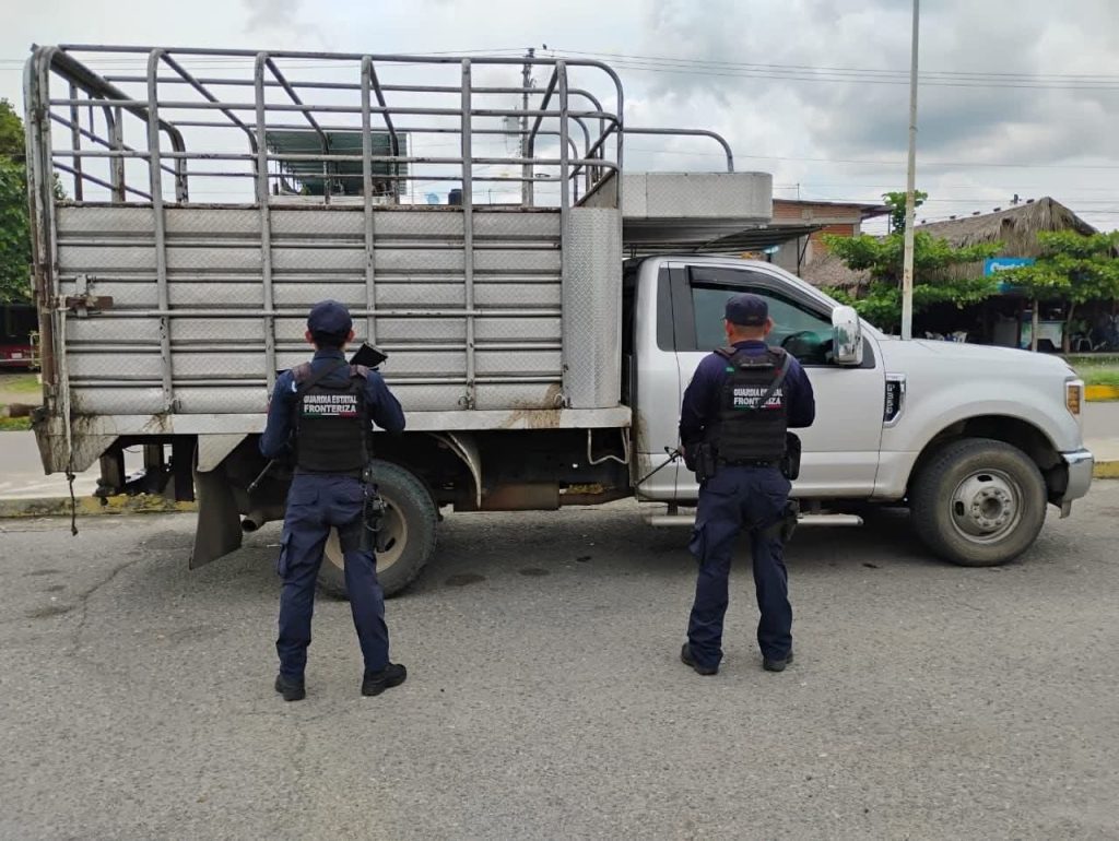 *– Una Ford F350 gris con placas de Chiapas y reporte de robo.