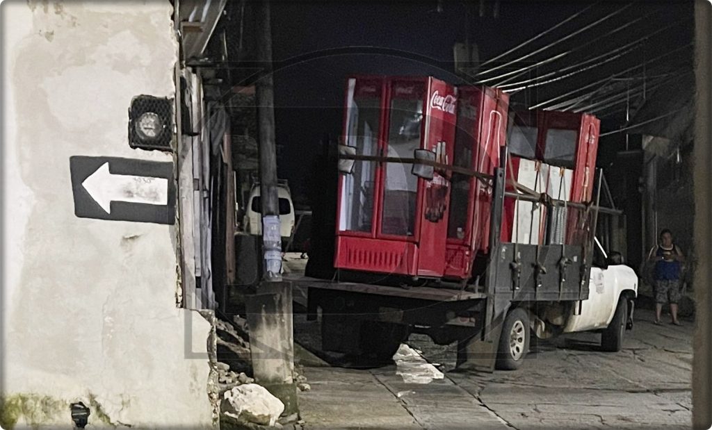 Comitán de Domínguez; 22/Septiembre/2025.- Una camioneta Nissan tipo Pick Up, cargada con varios refrigeradores de Coca-Cola, sufrió un accidente en las inmediaciones del barrio El Cedro, luego de que presuntamente se quedara sin frenos mientras intentaba subir una pendiente.