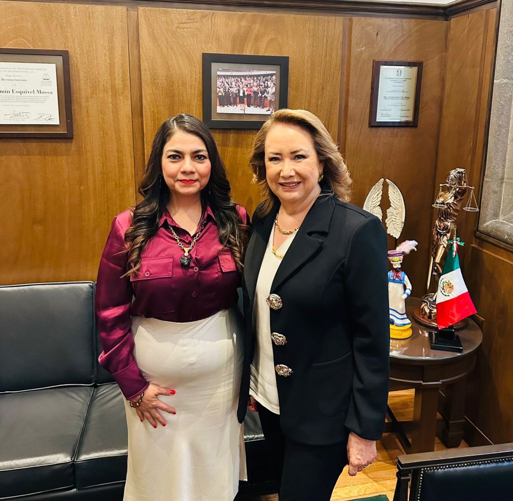 Ciudad de Mรฉxico; 23/Septiembre/2025.- En reuniรณn con la Dra. Yasmรญn Esquivel Mossa, Ministra de la Suprema Corte de Justicia de la Naciรณn, la Magistrada Presidenta del Tribunal Electoral del Estado de Chiapas, Mtra. Magali Arellano Cรณrdova abordรณ temas importantes en materia jurisdiccional y de gรฉnero.