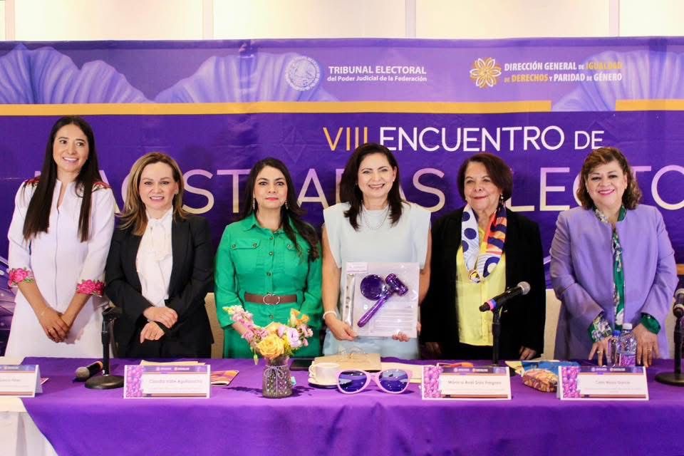 Ciudad de MΓ©xico; 24/Septiembre/2025.- En el marco del VIII Encuentro de Magistradas Electorales 2025 realizado los dΓas 22 y 23 de septiembre en la CDMX, la Magistrada Presidenta del Tribunal Electoral del Estado de Chiapas, Mtra. Magali Arellano CΓ³rdova hizo entrega del Mazo Morado a la Magistrada Presidenta del TEPJF, MΓ³nica AralΓ Soto Fregoso.