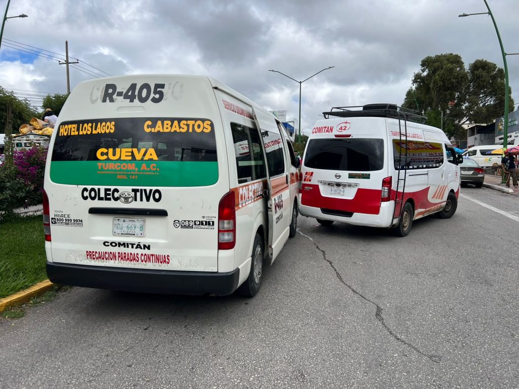 En el percance estuvieron involucrados dos colectivos del transporte público. Según los primeros reportes, el conductor de la combi que cubre la ruta “La Cueva” presuntamente impactó en el costado trasero izquierdo a una unidad de la línea “La Angostura”.