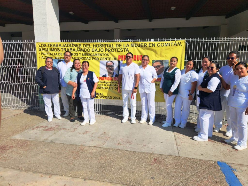 Comitán de Domínguez; 26/MAR/2025.- Trabajadores del Hospital Materno Infantil de esta ciudad de Comitán, se declararon trabajar bajo protesta para exigir a las autoridades de salud, atender su petición sobre el presunto acoso laboral y la supuesta creación de empresas “fantasma”, por lo que acusan a funcionarios de dicho nosocomio y exigen se realice una auditoría.