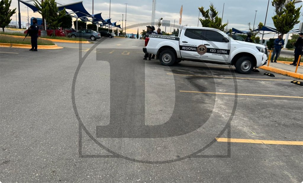 El estacionamiento de la plaza comercial fue acordonado por agentes policíacos, mientras peritos y ministeriales realizaban las primeras diligencias en el vehículo y sus alrededores.