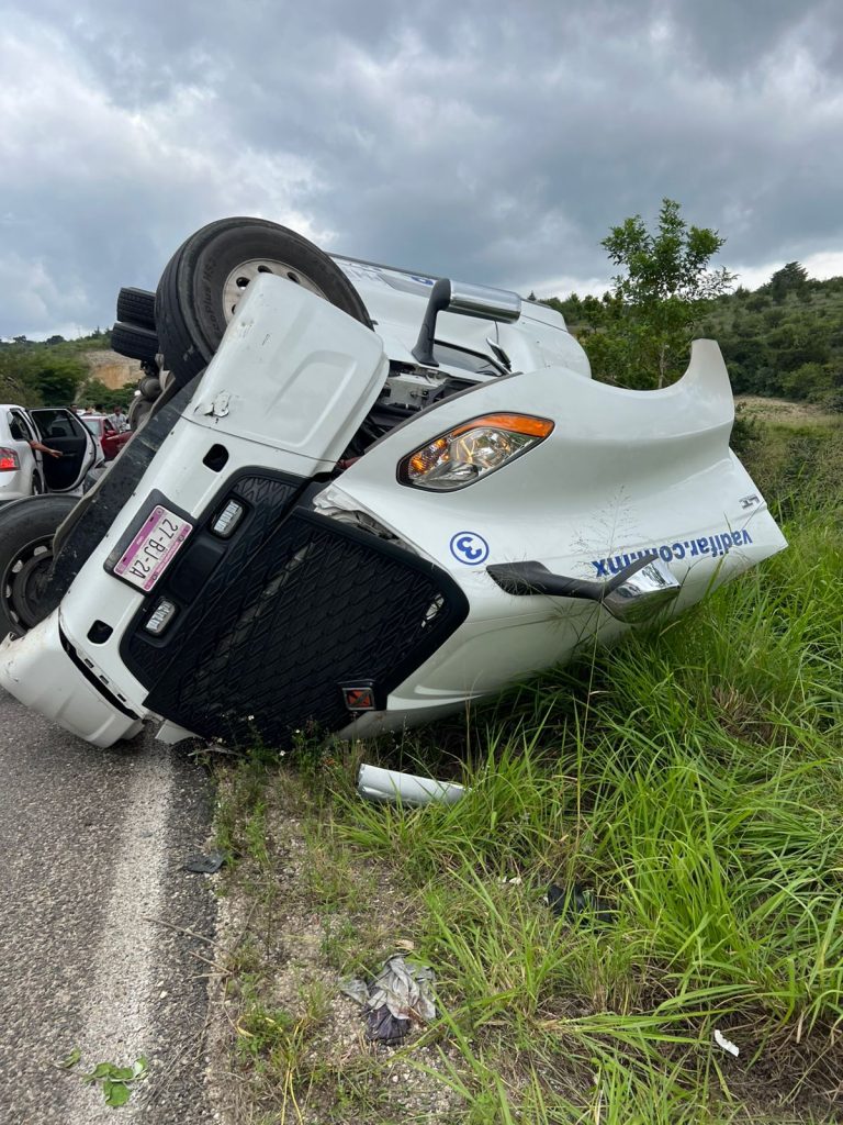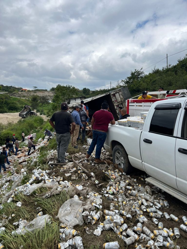 La independencia, Chiapas; 15/OCTUBRE/2025.- Hace unos momentos se registró una aparatosa volcadura de un tráiler cargado con cerveza sobre el tramo carretero que conduce al municipio de La Independencia, a la altura de la ranchería Pozo Nuevo.