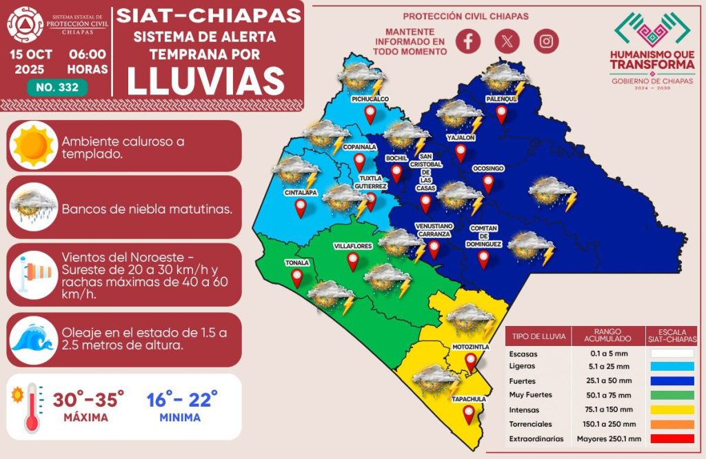 El mandatario estatal subrayó que la prioridad de su gobierno es proteger la vida de todas y todos los chiapanecos, por lo que exhortó a la ciudadanía a mantenerse informada a través de los canales y redes oficiales de Protección Civil Chiapas, así como a seguir las recomendaciones emitidas por las autoridades.