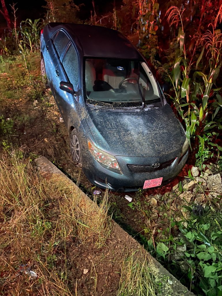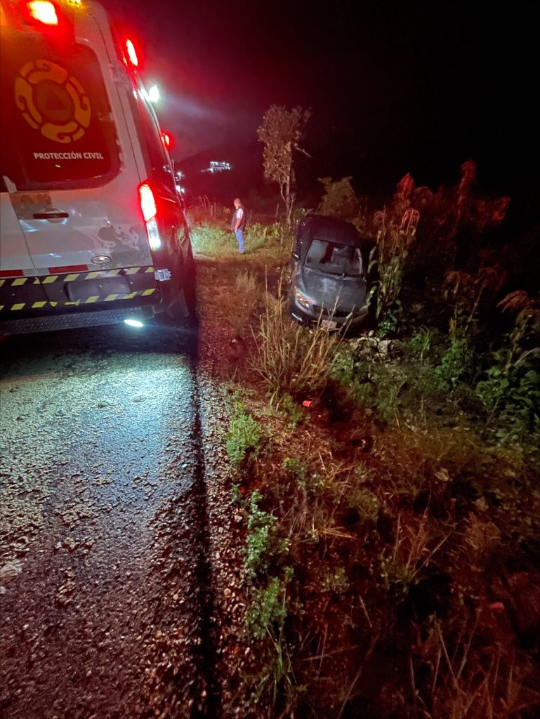 El percance sucedió a la altura de la ranchería Quija, en donde el pavimento mojado provocó que el conductor de un Toyota tipo Yaris, de color gris, perdiera el control por lo que acabó por salirse de la cinta asfáltica y cayó a un canal.