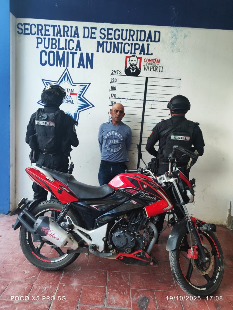 Comitán, Chiapas; 20/OCTUBRE/2025.- Durante un recorrido de seguridad en el barrio El Cedro, elementos del Grupo Táctico de la Policía Municipal detuvieron a dos personas extranjeras presuntamente dedicadas al robo de motocicletas.