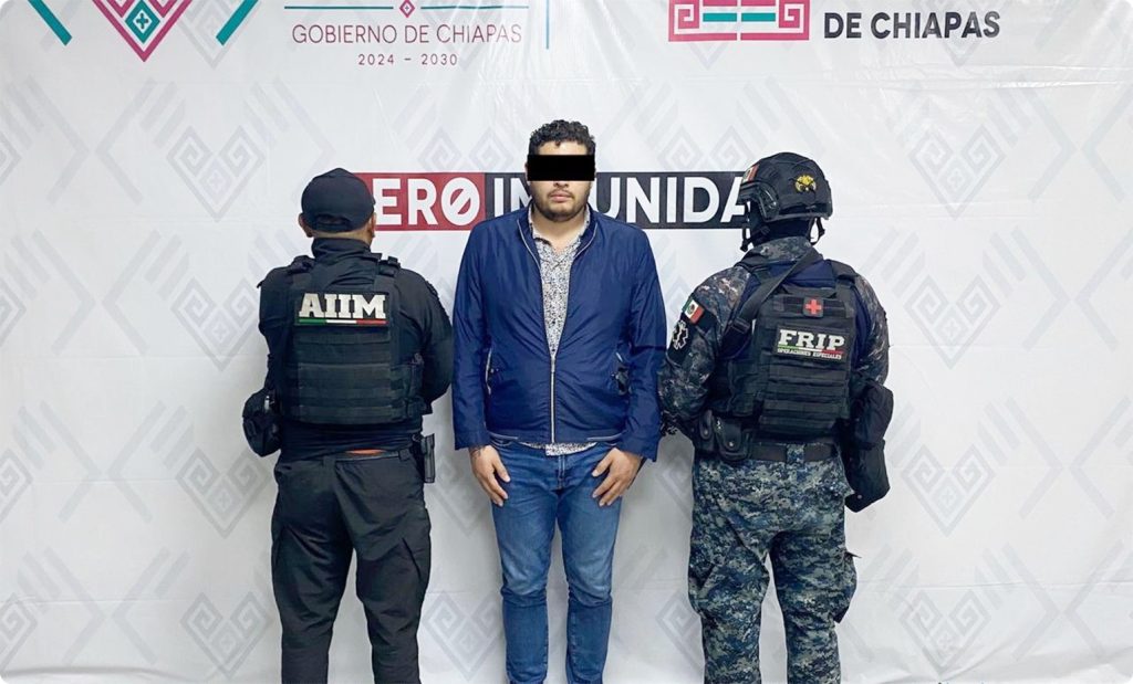 Tuxtla Gutiérrez; 22/Octubre/2025.- La Fiscalía General del Estado de Chiapas, en colaboración con la Fiscalía del Estado de Querétaro y la Secretaría de Seguridad del Pueblo, informó sobre la detención de Miguel “N”, presunto responsable del homicidio calificado de siete adultos y un menor de edad, ocurrido el 21 de mayo de 2022 en el municipio de Marqués de Comillas, Chiapas.