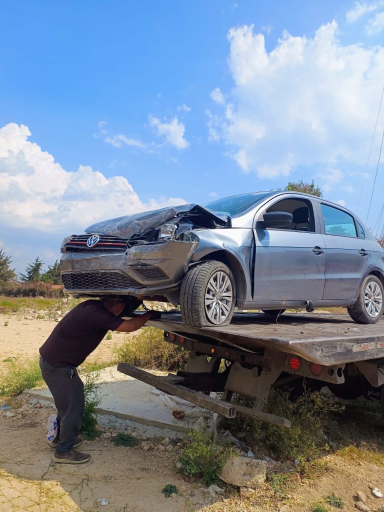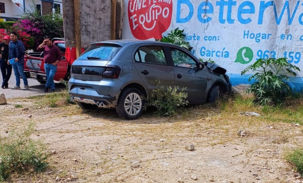 El percance sucedió a la altura de la 8ª. Calle Sur en donde de acuerdo a testigos, la conductora de un vehículo Volkswagen tipo Gol de color gris, estaba aprendiendo a manejar y perdió el control en la curva, por lo que se impactó contra la barda de una vivienda.