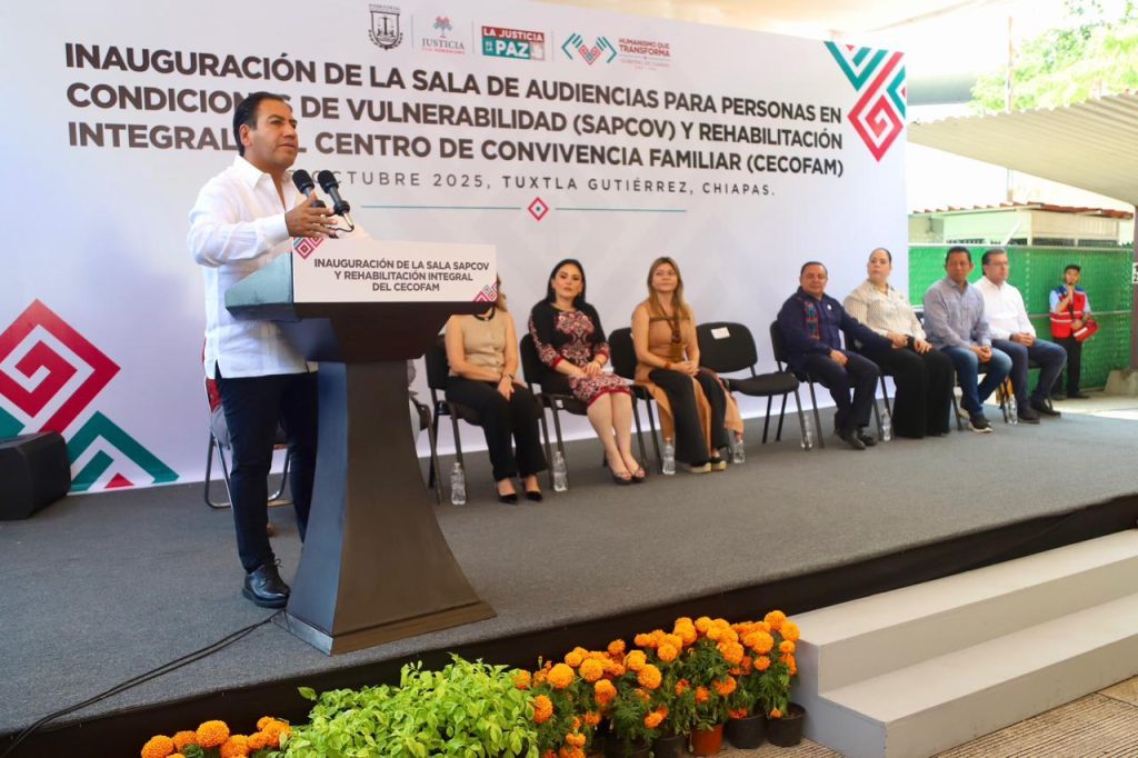 Tuxtla Gutiérrez; 28/Octubre/2025.- Con el compromiso de fortalecer la justicia con sentido humano, el gobernador Eduardo Ramírez Aguilar y el magistrado presidente del Poder Judicial del Estado, Juan Carlos Moreno Guillén, encabezaron la inauguración de la Sala Especializada para la Participación Infantil y Adolescente (SEPIA) y la rehabilitación integral del Centro de Convivencia Familiar (Cecofam).