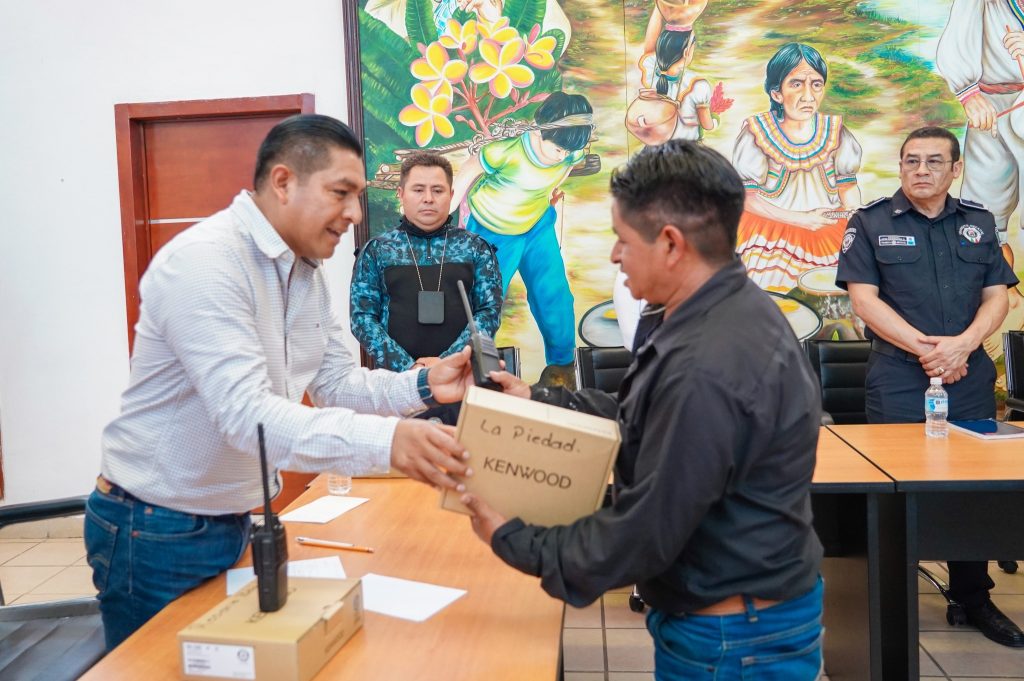 Presidente Municipal de Las Margaritas refuerza seguridad con entrega de radios de comunicación.