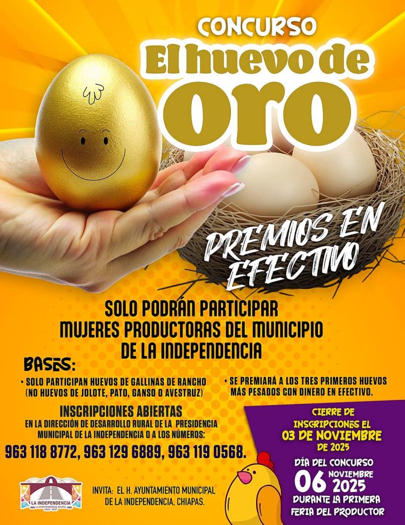 La Independencia, Chiapas; 31/OCTUBRE/2025.– Si eres productora originaria de nuestro municipio, inscríbete y participa por el primer lugar.