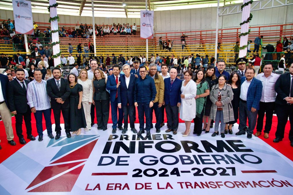 Cabe destacar el acompañamiento en este primer informe de integrantes del Cabildo, diputadas y diputados locales y federales, presidentes municipales, representantes del sector público y privado, y de las fuerzas armadas.