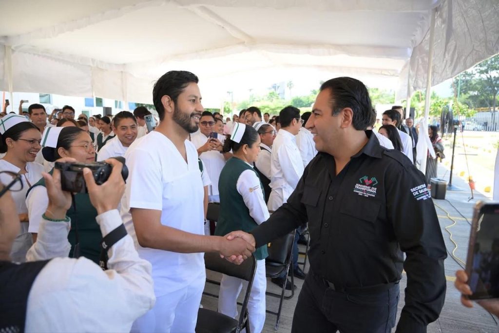 “Nuestro mayor desafío es alcanzar los estándares internacionales en número de personal de salud y lograr que ninguna comunidad carezca de médicos especialistas ni de enfermeras”, afirmó tras tomar protesta a las y los nuevos profesionales, a quienes llamó a ejercer su vocación con humanidad, respeto y empatía, defendiendo la salud como un derecho y no como mercancía. Los exhortó a construir espacios libres de discriminación, prescribir con responsabilidad, cuidar con conciencia y dignificar su profesión.