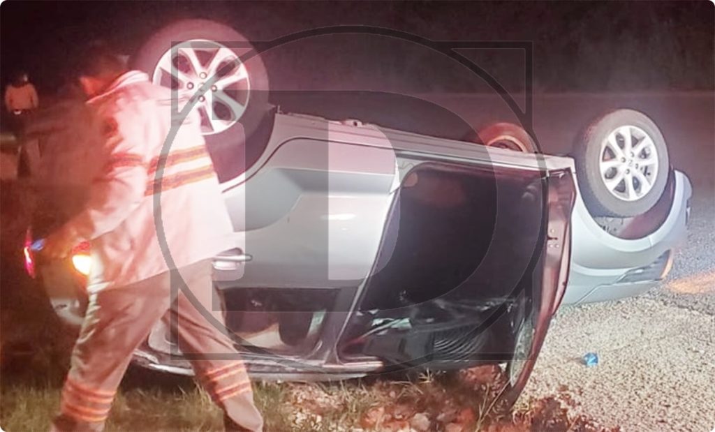 El percance sucedió a la altura del banco de arena, en donde el presunto exceso de velocidad del conductor de un Fiat, de color gris, provocó que al tomar la curva el vehículo derrapara y terminara volcado sobre la cinta asfáltica.
