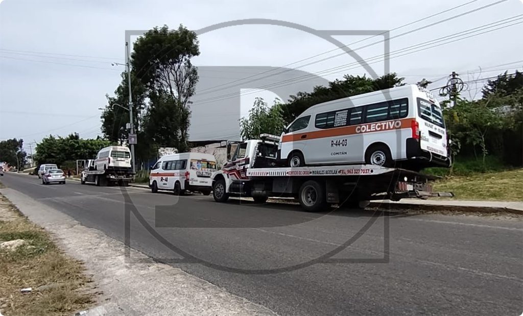 Comitán de Domínguez; 04/Noviembre/2025.- Tres unidades del transporte público en su modalidad de colectivo, fueron aseguradas este martes durante un operativo realizado sobre la carretera Comitán–Tzimol, frente a la Universidad (UDS).