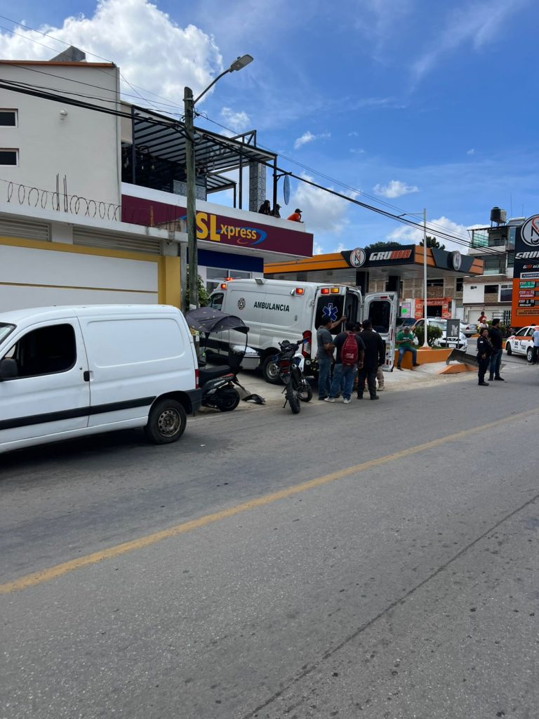 De acuerdo con los primeros reportes, el percance ocurrió sobre la Décima Avenida Poniente Sur, a la altura de la Quinta Calle, cuando el conductor del taxi presuntamente intentó realizar un corte de circulación, sin la debida precaución, provocando que el motociclista se impactara en el costado derecho de la unidad.