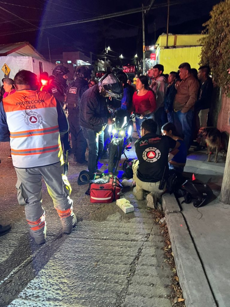 En la motocicleta viajaban el conductor y una acompañante, siendo esta última también lesionada durante el impacto. Las tres fueron trasladadas en ambulancia al Hospital General para su valoración. Elementos de Vialidad Municipal, Policía Estatal Preventiva y Policía Municipal acudieron al lugar para realizar las diligencias correspondientes y deslindar responsabilidades.