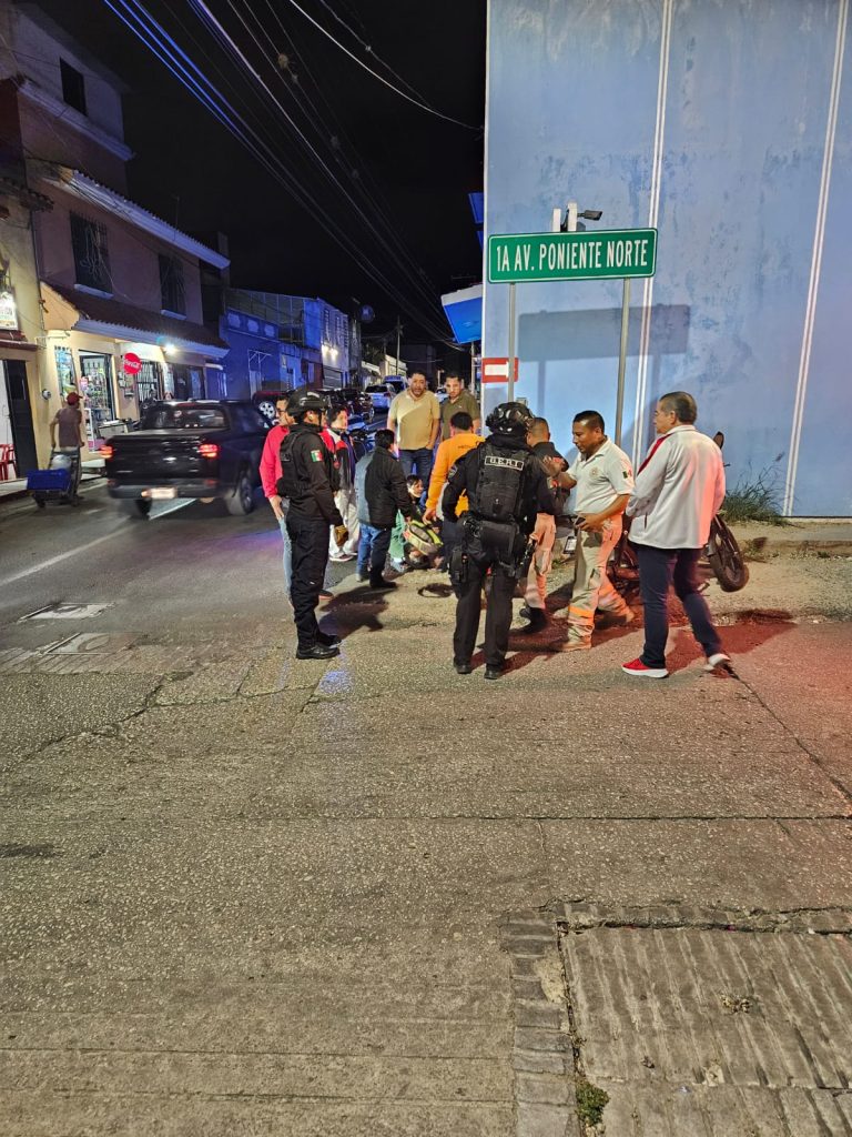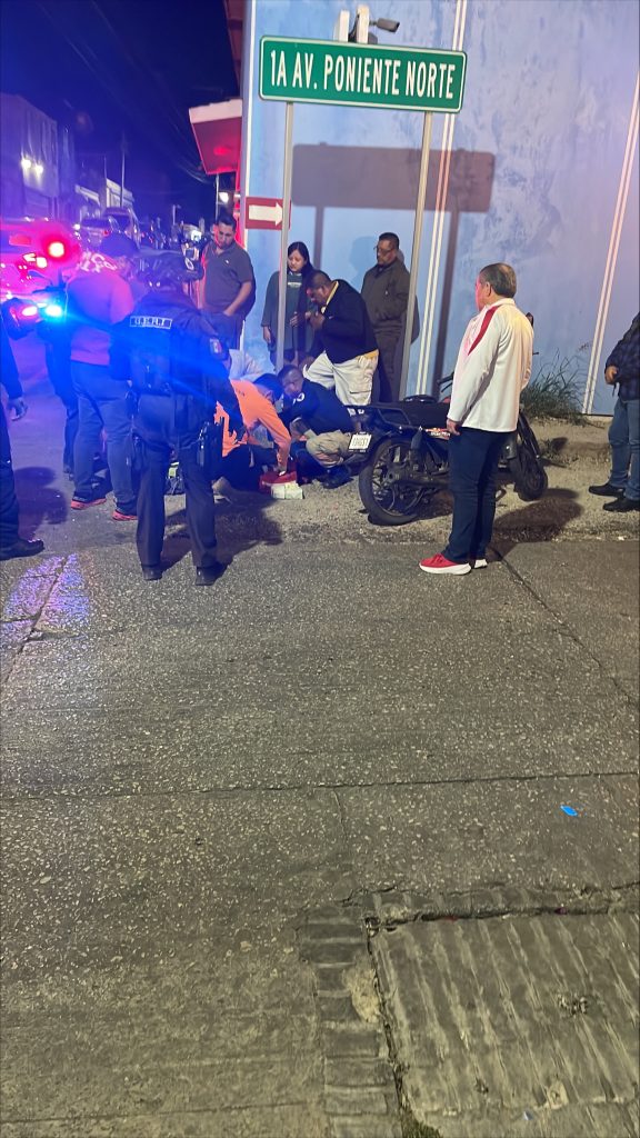 Los hechos sucedieron sobre la quinta calle norte a la altura de la primera avenida poniente en el barrio de la Cruz Grande, en donde la presunta falta de precaución del conductor de una camioneta provocó que se pasara el cruce 1×1 y embistiera a una motocicleta marca Italika, de color negro.