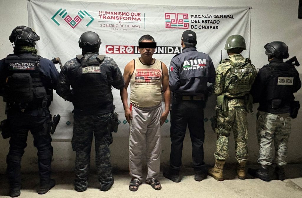 San Cristóbal de Las Casas; 27/Noviembre/2025.- El Grupo Interinstitucional, conformado por la Fiscalía General del Estado, la Secretaría de la Defensa Nacional, la Secretaría de Seguridad del Pueblo y la Policía Municipal, cumplimentaron siete órdenes de aprehensión en contra de Ángel “N”, Javier “N” y/o Francisco “N”, Aureliano “N”, Porfirio “N”, Carlos “N”, José “N” y Guadalupe “N”, como presuntos responsables de los delitos de atentados contra la paz y la integridad corporal y patrimonial de la colectividad, lesiones calificadas y daños.