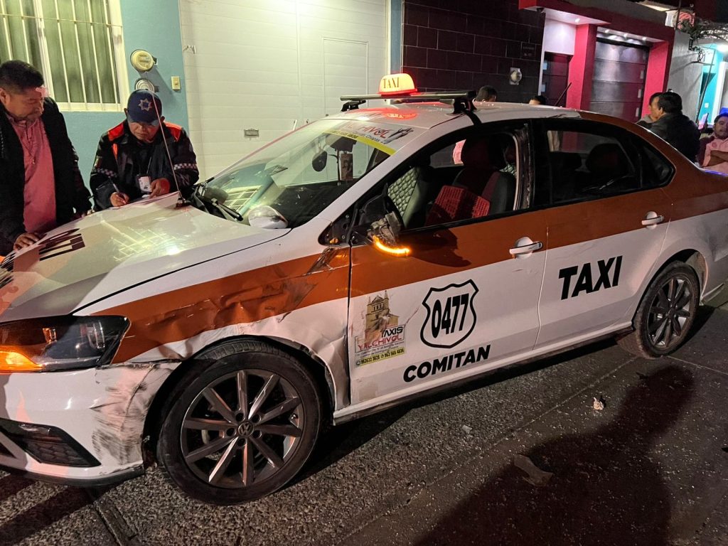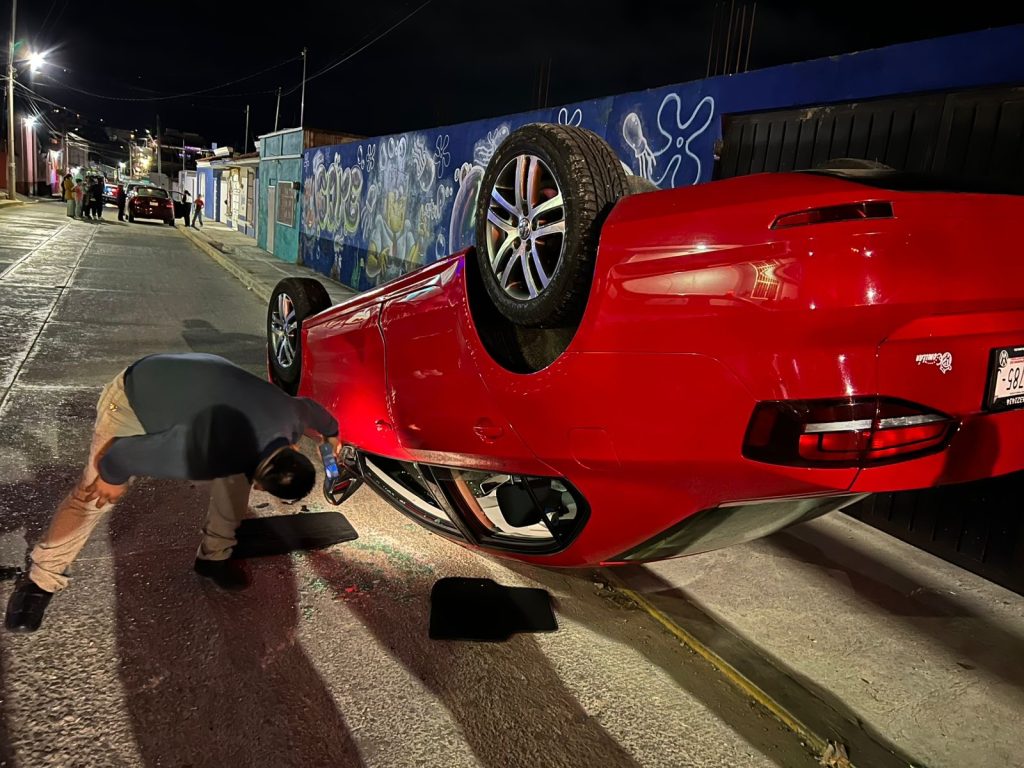 De acuerdo con los primeros reportes, presuntamente una mujer que conducía el Jetta perdió el control de la unidad y terminó impactándose contra el taxi, provocando la volcadura.