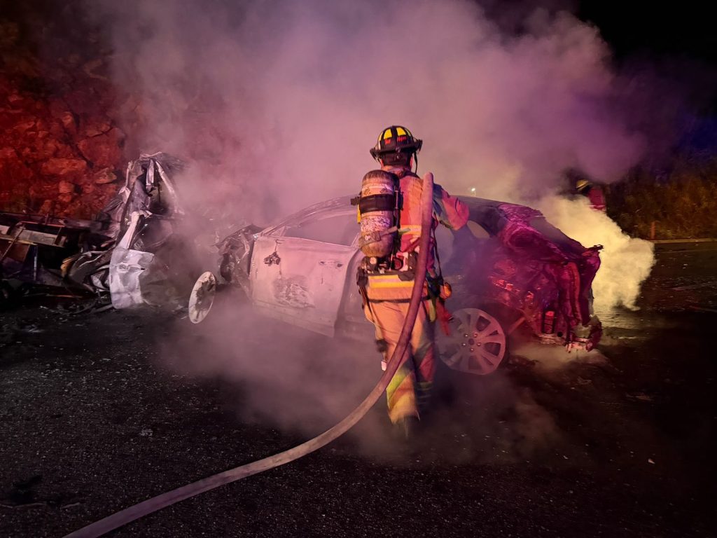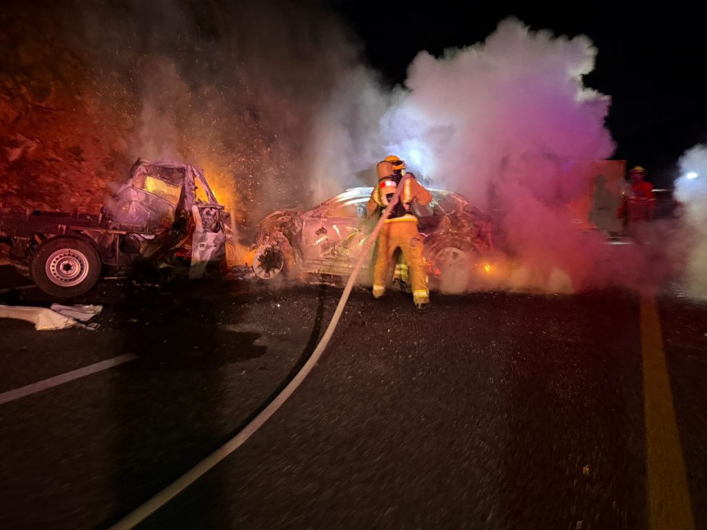 El incidente involucró al menos tres unidades, entre ellas un Mazda 3, localizado totalmente calcinado, y una Nissan NP300, con alrededor del 50% de afectación por incendio. En el interior de esta última, personal de emergencia encontró el cuerpo calcinado de un hombre, quien quedó prensado tras la colisión que provocó el incendio.