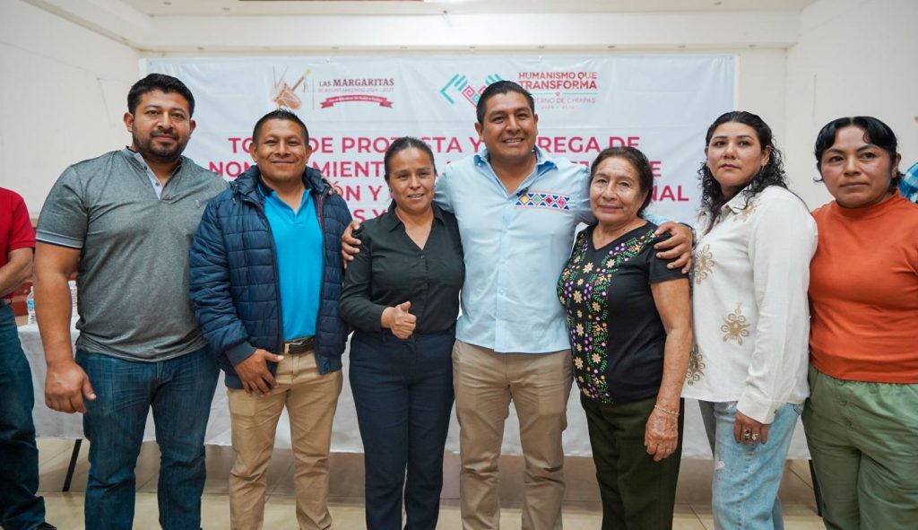 Las Margaritas; 07/ABR/2025.- En un acto que refleja el compromiso por fortalecer el vínculo entre gobierno y sociedad, el presidente municipal Bladimir Hernández Álvarez encabezó la toma de protesta y entrega de nombramientos a los Consejos de Participación y Colaboración Vecinal de los distintos barrios y fraccionamientos del municipio.
