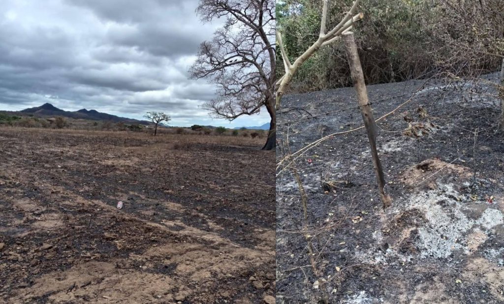 Jiquipilas; 10/ABR/2025.- Una devastadora quema de pastizales en la zona de la colonia Triunfo de Catarina, en el municipio de Jiquipilas, ha causado graves pérdidas a diversos propietarios de terrenos, quienes vieron cómo las llamas arrasaban con su patrimonio. Entre los más afectados se encuentra Huberlaín Clemente Grajales, dueño del rancho Monte Cardon, quien sufrió la pérdida de aproximadamente 40 hectáreas de pastura, así como la muerte de dos de sus semovientes.