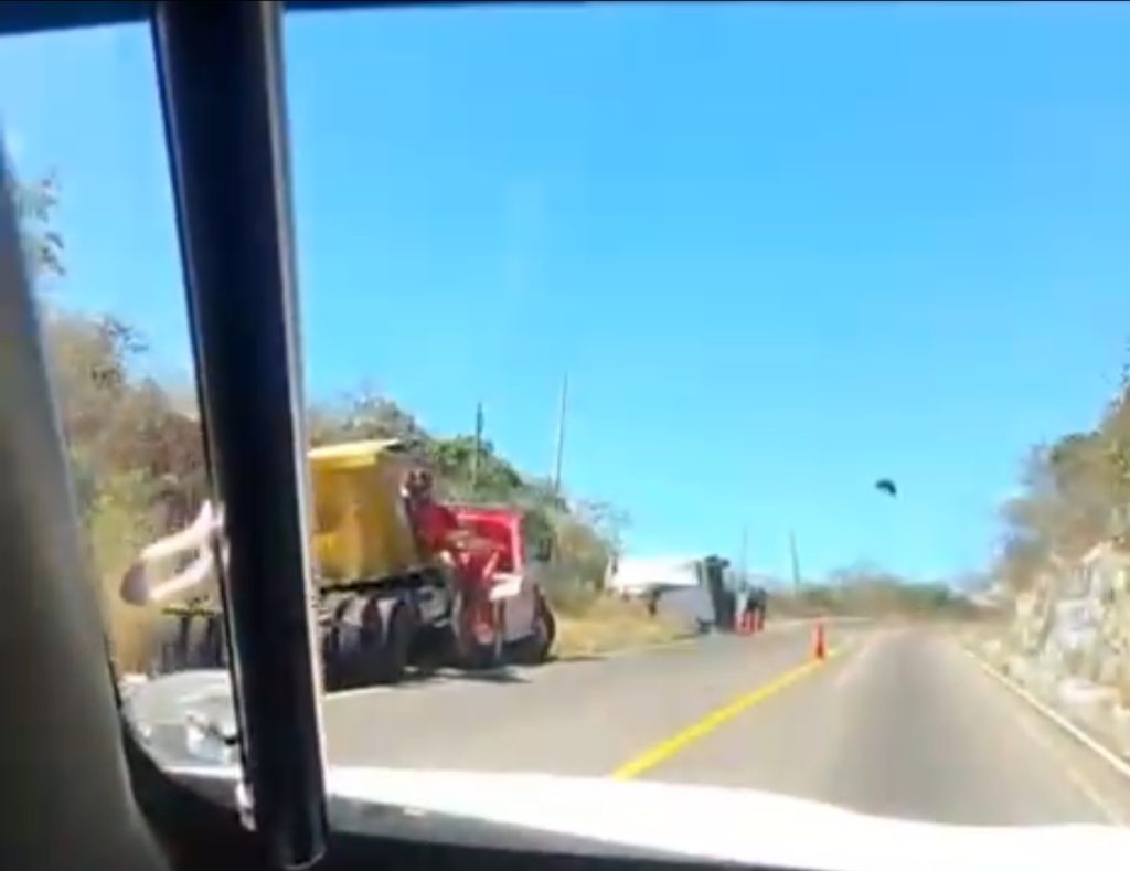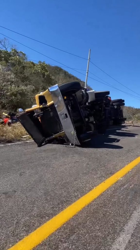 El accidente se registró a la altura de las curvas conocidas como “La Nariz del Diablo” o “Las Antenas”, donde el conductor de un tráiler Kenworth, color amarillo, perdió el control de la pesada unidad al tomar una curva pronunciada, lo que ocasionó que el vehículo volcara sobre su costado derecho.