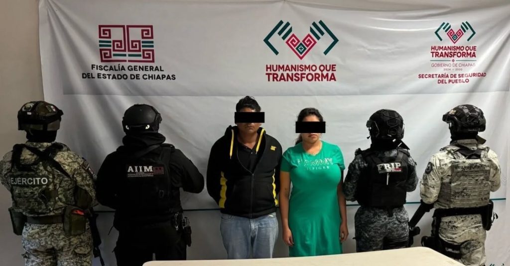 Cintalapa; 10/ABR/2025.- La Fiscalía General del Estado de Chiapas, en coordinación con el grupo especial conocido como “Los Pakales”, logró la detención de Karen “N”, una influencer originaria de Chiapas, y Alejandro “N”, durante un operativo realizado en el barrio Guadalupe del municipio de Cintalapa de Figueroa.