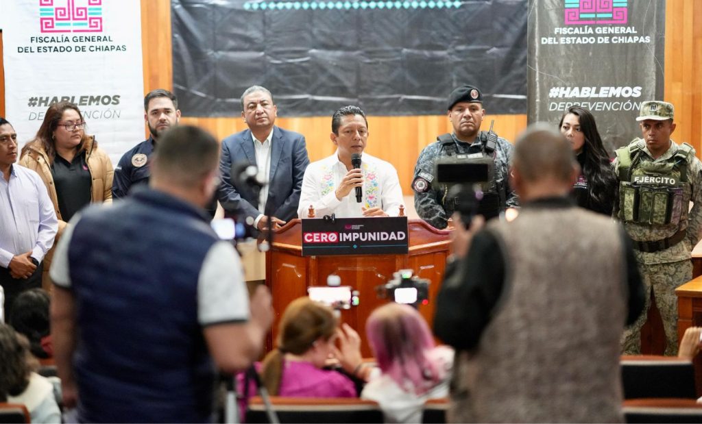 San Cristóbal de Las Casas; 21/ABR/2025.- En San Cristóbal de Las Casas, el Fiscal General del Estado, Jorge Luis Llaven Abarca, encabezó una conferencia de prensa para dar a conocer los avances en la investigación sobre el feminicidio en agravio de Rosa “N” y una menor de edad de identidad reservada, ocurrido en el municipio de Chamula, donde informó la detención de Vicente “N”, presunto responsable de este lamentable hecho.
