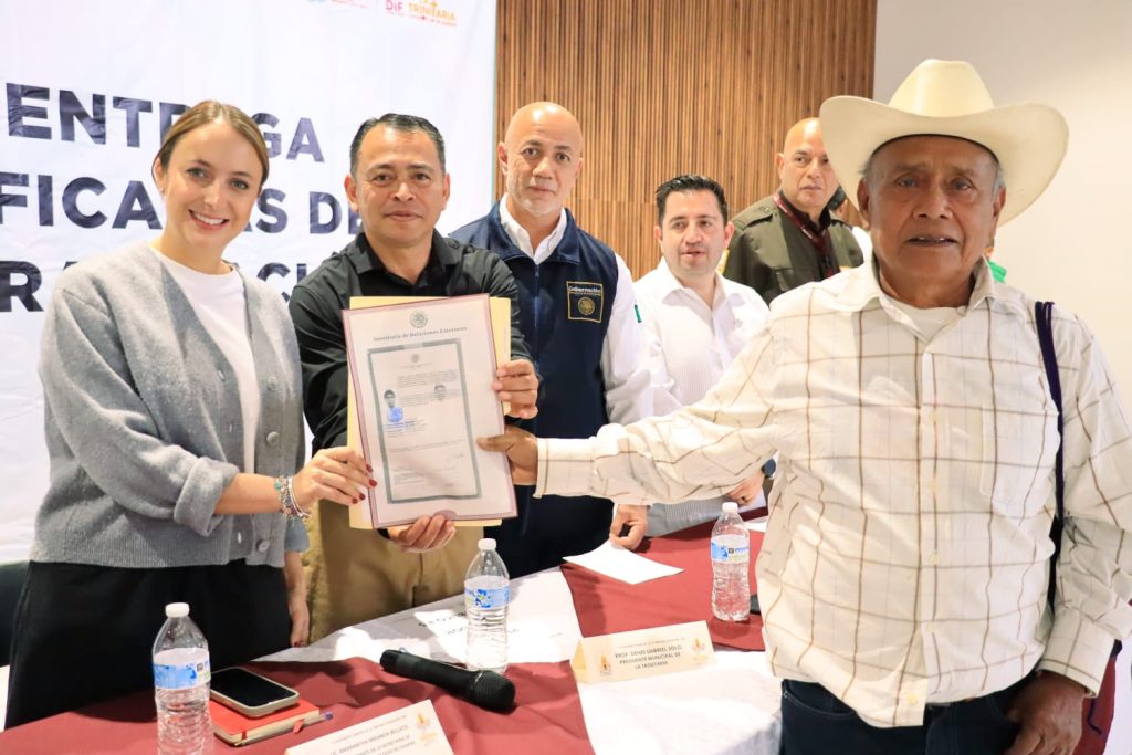 La Trinitaria; 26/MARZO/2026.- Para garantizar su identidad jurídica y legal, se hizo entrega de 129 copias certificadas de naturalización y 129 CURP certificadas a ex refugiados guatemaltecos asentados en diversos puntos de La Trinitaria, quienes ahora ya son mexicanos con derechos y obligaciones como todo ciudadano.