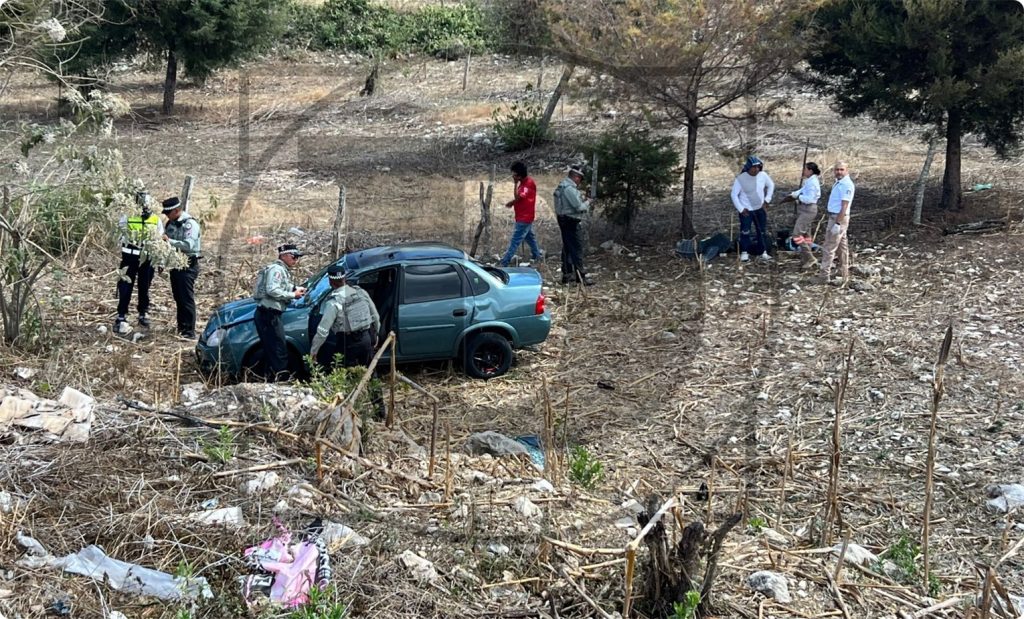 De acuerdo con los primeros reportes, los afectados viajaban a bordo de un vehículo tipo Chevy Monza, color verde, con placas del estado de Chiapas. Presuntamente, el conductor perdió el control de la unidad mientras circulaba, lo que provocó que saliera de la cinta asfáltica y terminara volcado, quedando el automóvil completamente destrozado.