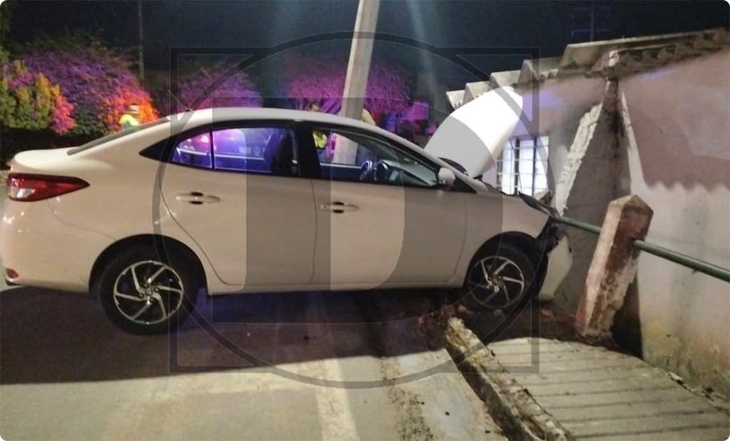 Los hechos sucedieron sobre la quinta calle norte, a la altura de la 11ª. avenida poniente, en donde el presunto exceso de velocidad del conductor de un vehículo marca Toyota, de color blanco, provocó que perdiera el control por lo que se impactó contra un barandal.