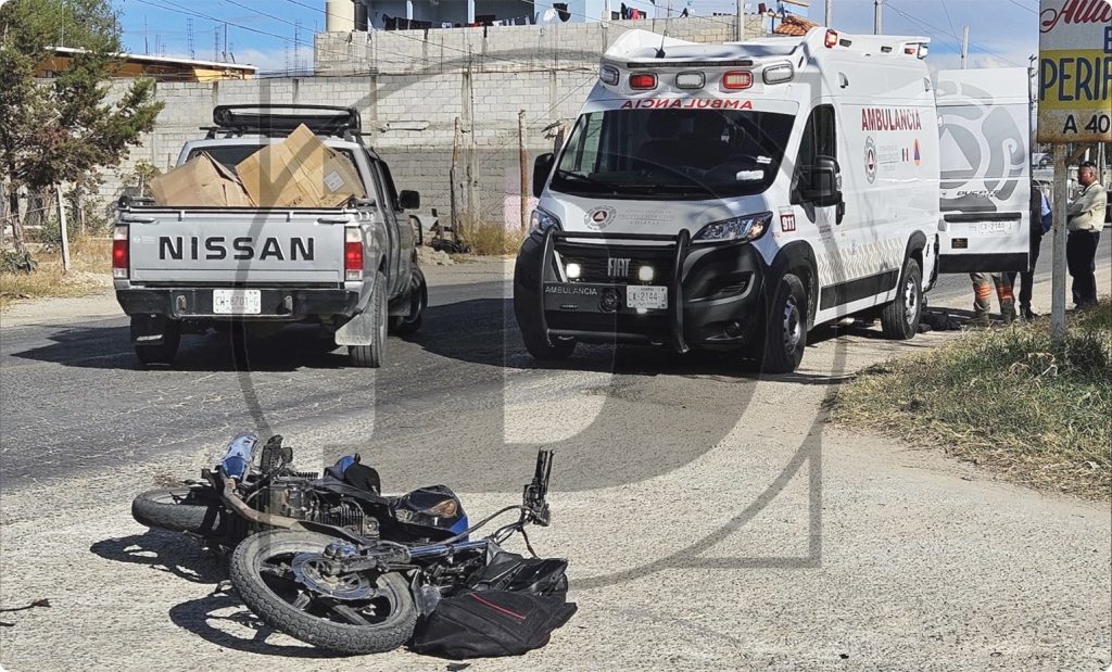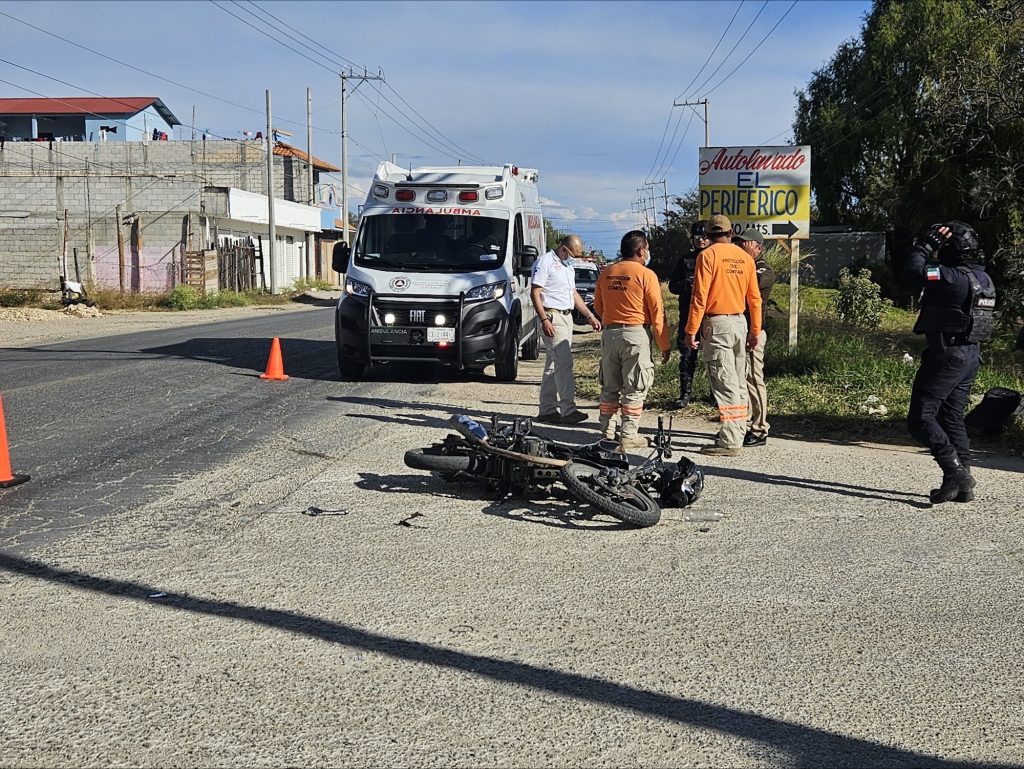 Los hechos sucedieron a la altura de la tercera calle sur, en donde la presunta falta de precaución del conductor de una motocicleta marca Italika tipo 125Z, de color negro, provocó que al tratar de rebasar perdiera el control por lo que derrapó y se impactó contra la parte posterior de una camioneta Ford tipo F150, de color guinda.