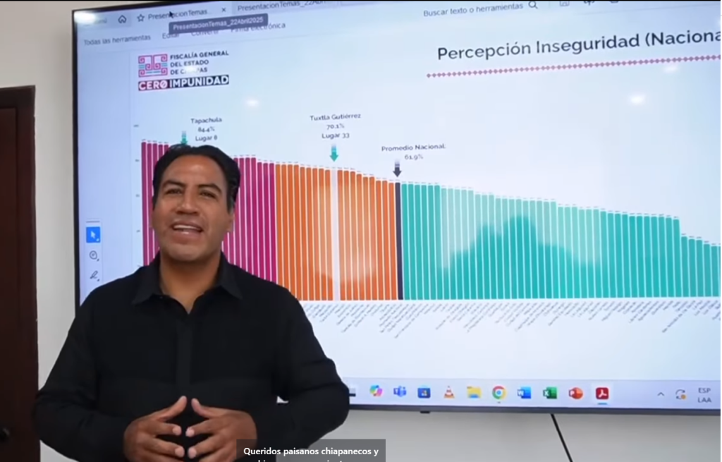 Tuxtla Gutiérrez; 22/ABR/2025.- Según datos revelados por el Instituto Nacional de Estadística y Geografía (INEGI), Tapachula experimentó una notable mejora en la percepción de seguridad, pasando del primer lugar al octavo en la Encuesta Nacional de Percepción de Inseguridad. Por su parte, Tuxtla Gutiérrez, la capital del estado, también mostró un avance significativo al pasar del sexto lugar al 33.