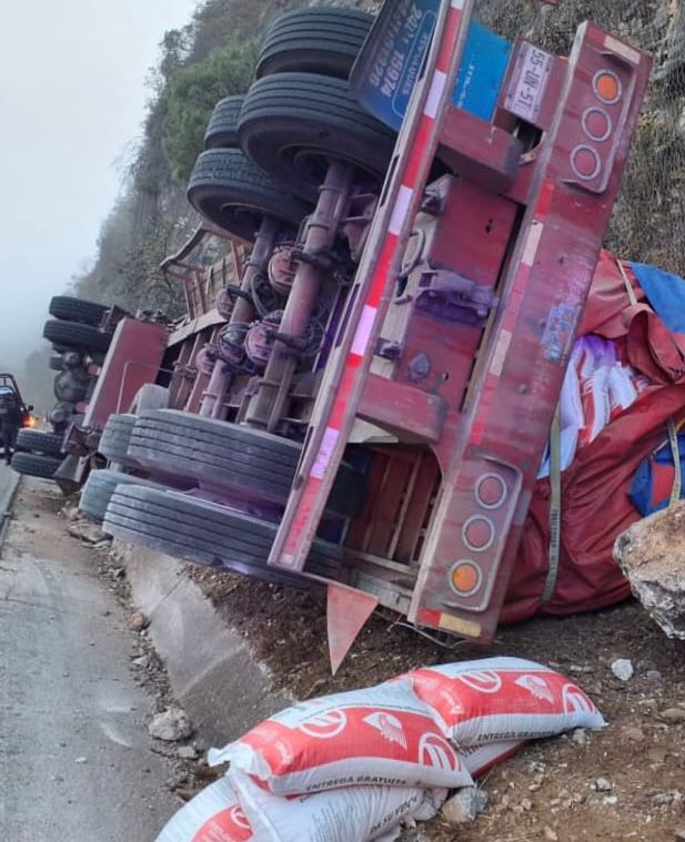 Tuxtla Gutiérrez; 01/ABRIL/2026.- La mañana de este miércoles se registró un aparatoso accidente en el kilómetro 43 de la carretera de cuota Chiapa de Corzo–San Cristóbal de Las Casas, donde un tráiler de carga volcó sobre su costado izquierdo, generando movilización de cuerpos de emergencia y autoridades de seguridad.