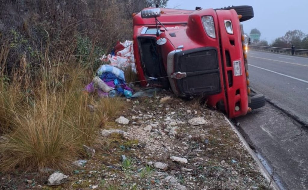 Volcadura de tráiler en tramo carretero Chiapa de Corzo–San Cristóbal deja daños materiales.