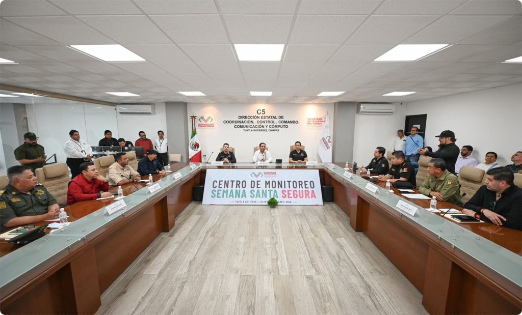 “Estamos en sesión permanente para brindar atención en materia de seguridad pública, protección civil, turismo y salud. Nuestra misión es que tengamos una actividad turística pacífica, tranquila y, sobre todo, segura. Aquí estaremos durante este periodo de Semana Santa y posteriormente para dar acompañamiento y vigilar el retorno de quienes nos visitan, tanto de las y los chiapanecos, mexicanos y extranjeros”, expresó.