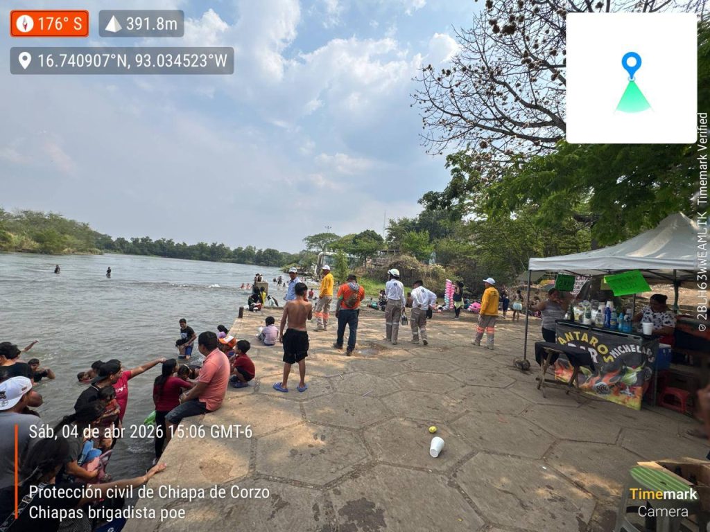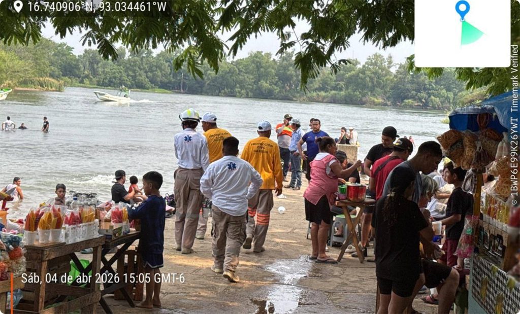 Chiapa de Corzo; 05/ABRIL/2026.- Un hombre de 28 años, identificado como Brayan Javier, falleció la tarde del sábado tras ingresar al río Grijalva en presunto estado de ebriedad. El incidente ocurrió en la zona del embarcadero del Trimarán, en Chiapa de Corzo, durante el operativo “Semana Santa Segura 2026”.