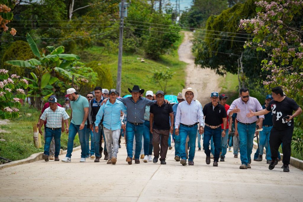 Las Margaritas; 06/ABRIL/2026.- En el marco de su gira de trabajo, el presidente municipal de Las Margaritas, Bladimir Hernández Álvarez, visitó el poblado de Rizo de Oro, donde encabezó la inauguración de la pavimentación de calles con concreto hidráulico, una obra que beneficiará directamente a las familias de esta comunidad.