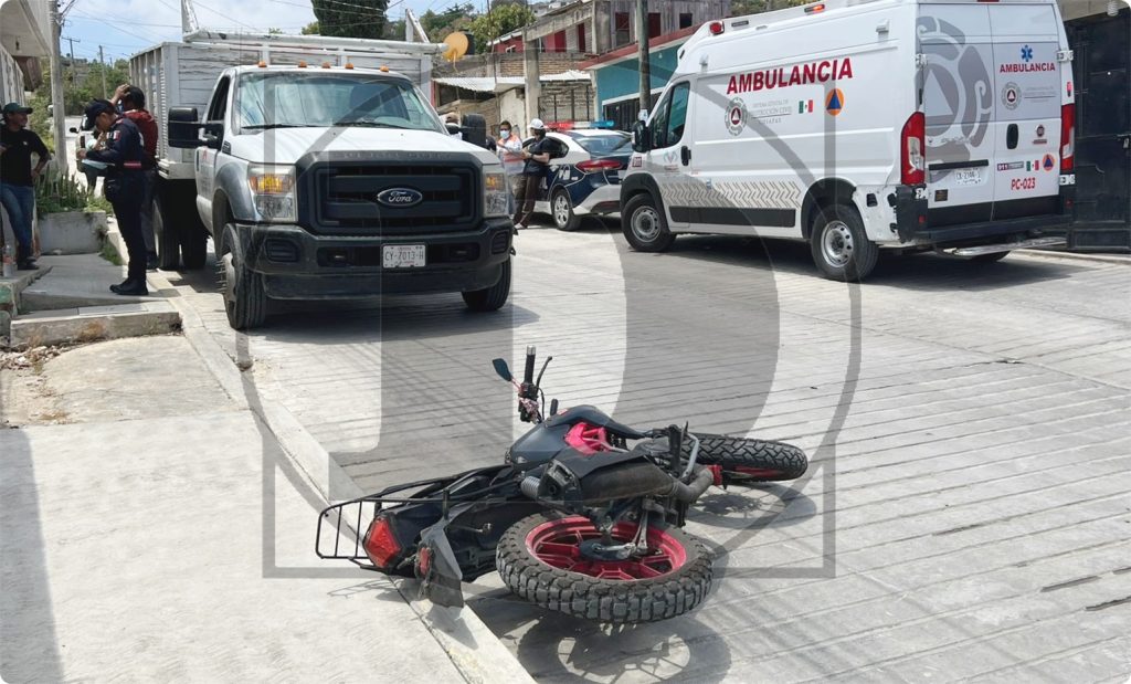 De acuerdo con los primeros reportes, el conductor de un camión de tres toneladas, propiedad de la empresa Zúñiga Ferretería y Materiales, circulaba sobre dicha vialidad cuando intentó estacionarse. Durante la maniobra, no advirtió la presencia de una motocicleta estacionada —de color negro con rojo—, la cual fue derribada, resultando con afectaciones en su carrocería.