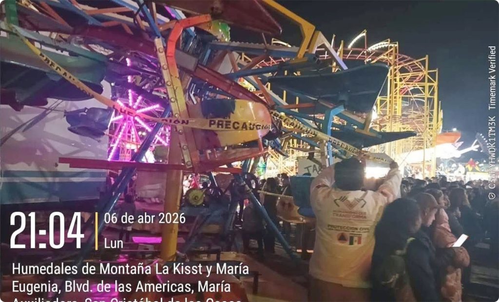 San Cristóbal de las Casas; 08/ABRIL/2026.- Autoridades de Protección Civil suspendieron de manera inmediata la operación de un juego mecánico tras detectar una falla estructural que representaba un riesgo potencial para los asistentes.