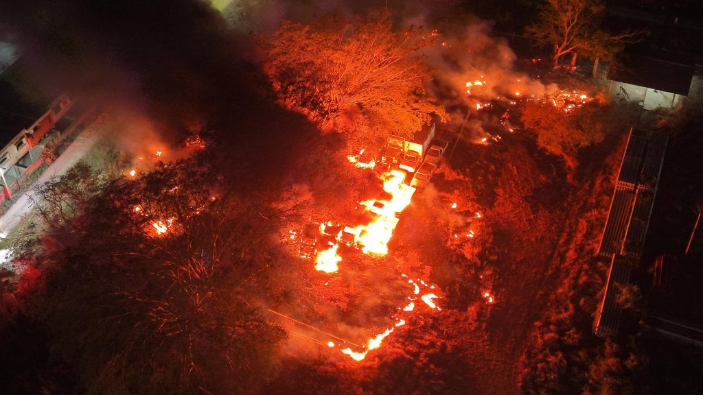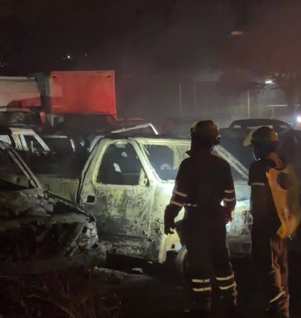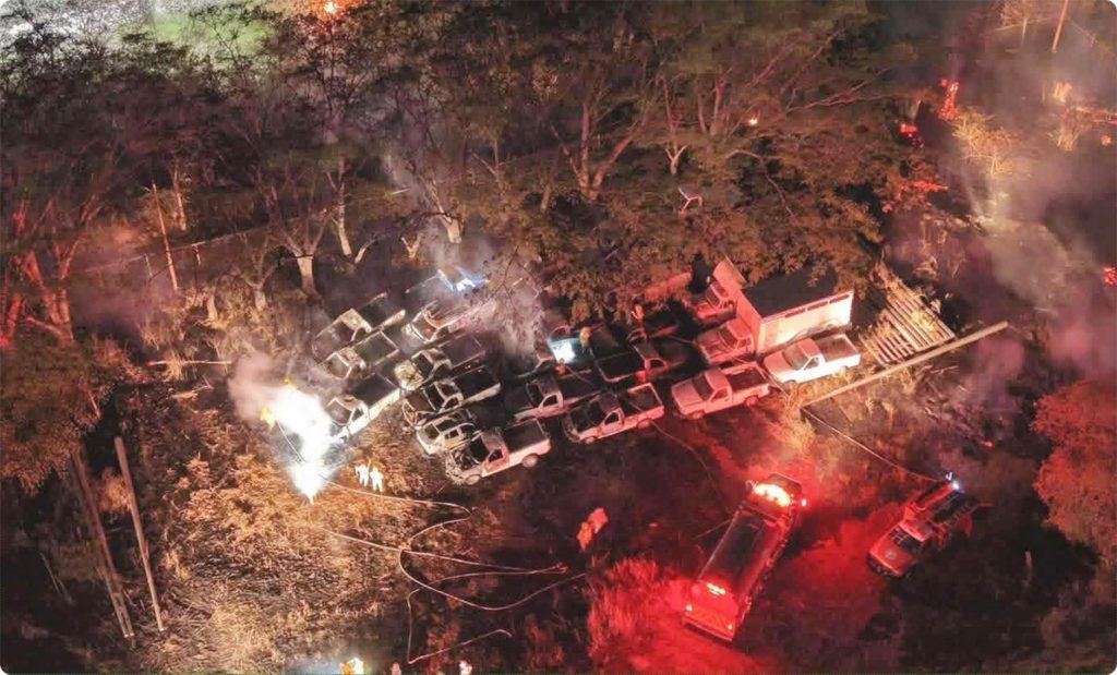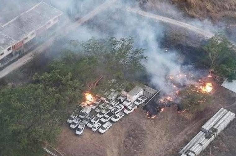 Vehículos afectados: Al menos 12 unidades oficiales consumidas por el fuego.